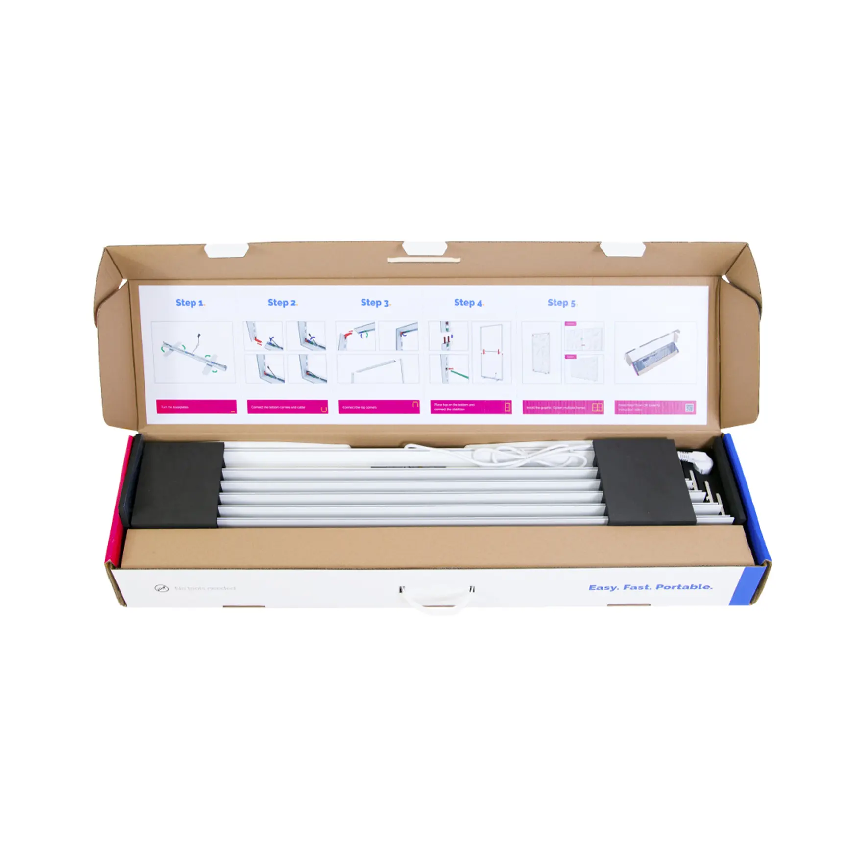 Das Inno Pop-Up LED System ist komplett zerlegbar, sodass der Aufsteller platzsparend transportiert und gelagert werden kann.