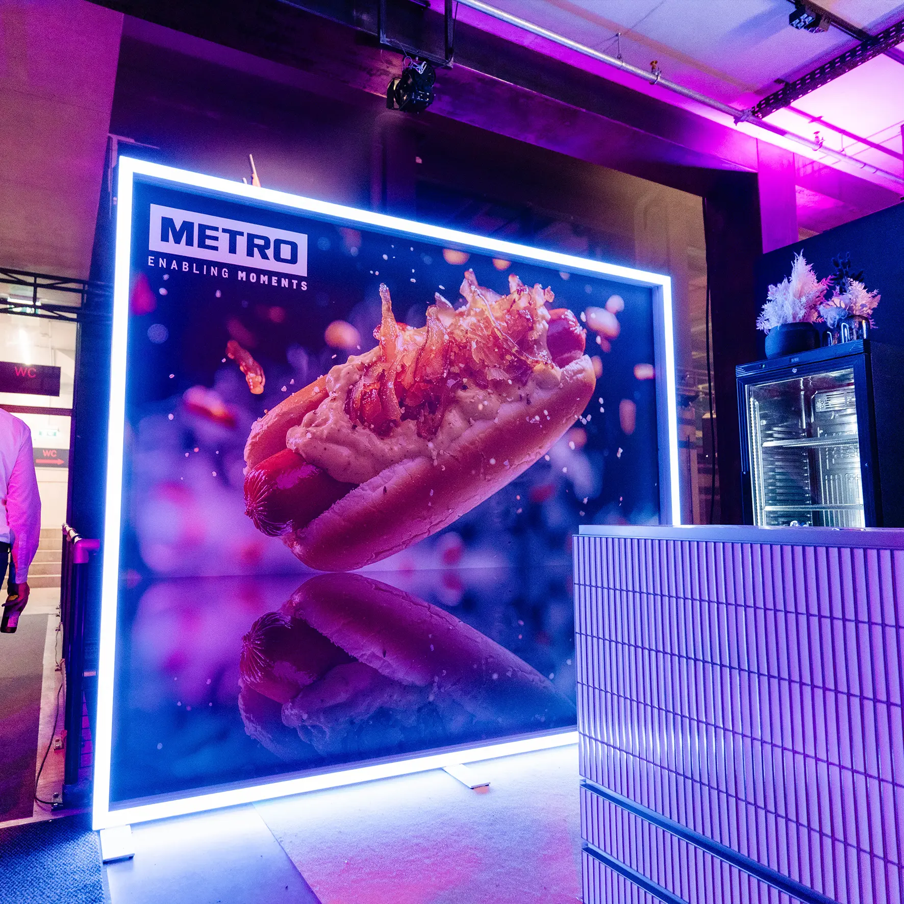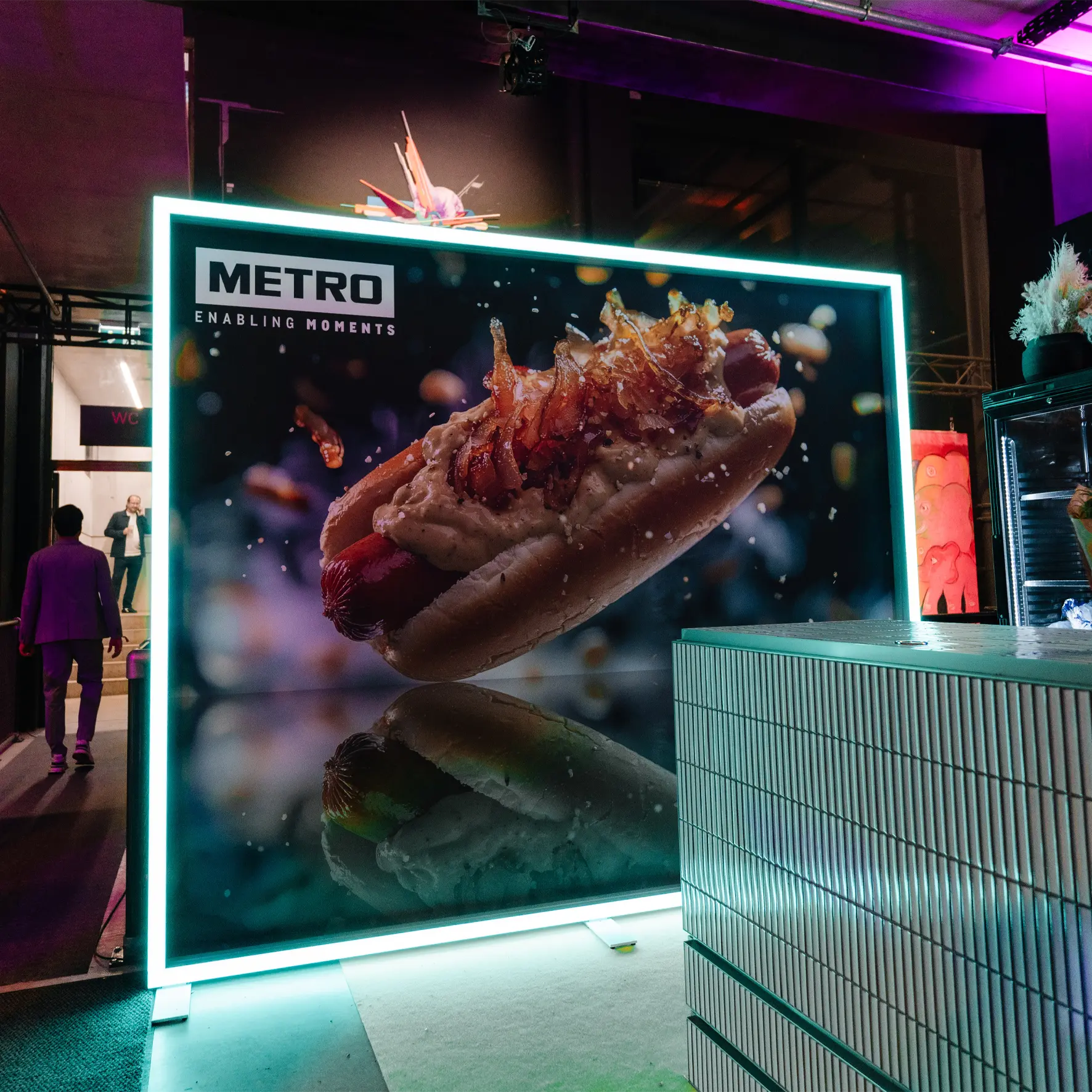 Der Rahmen ist in verschiedenen Größen erhältlich, leicht zu montieren und dank energiesparender LED-Technik besonders langlebig. Durch den austauschbaren Textilprint bleibt der Line Up Rahmen flexibel für saisonale Aktionen, Markenwechsel oder kurzfristige Kampagnen.