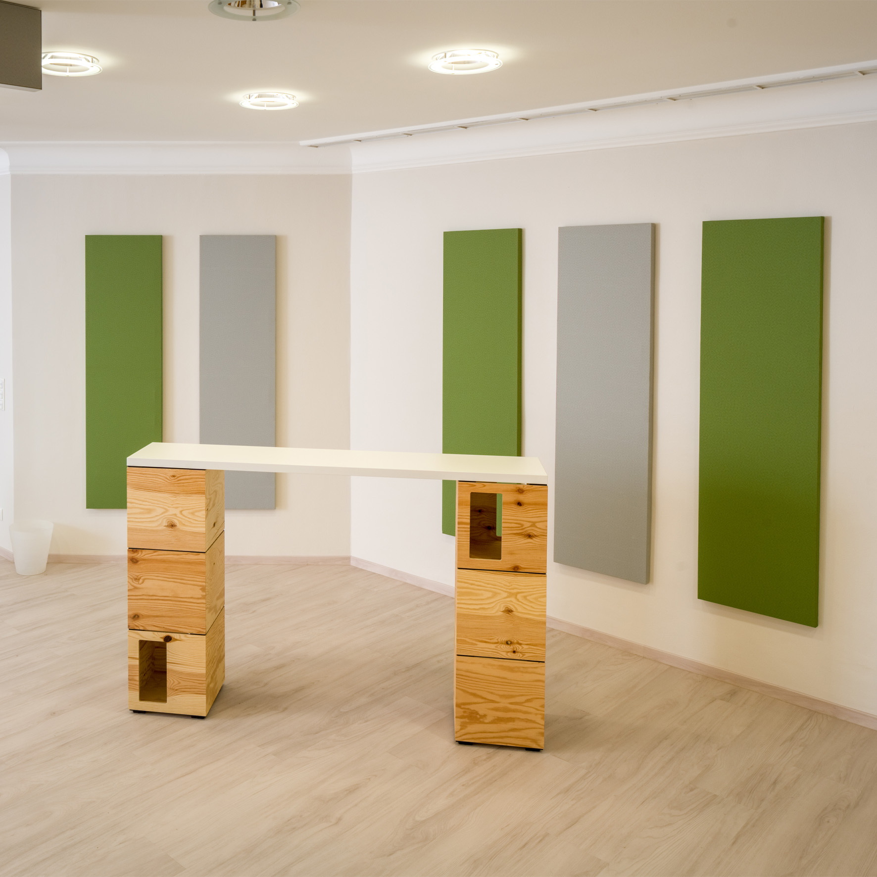 Die filzartigen Akustikplatten, welch zu 70% aus recycelten Petflaschen bestehen!, sind der Grundstoff für eine schier endlose Zahl an kreativen Lösungen. In unserem Produktionsstandort können wir aus Platten komplett individuelle Formen oder Nuten ausfräsen, Schriftzüge aufdoppeln und noch viel mehr.